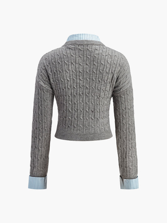 2'si 1 Arada Renk Bloklu Örgü Üst