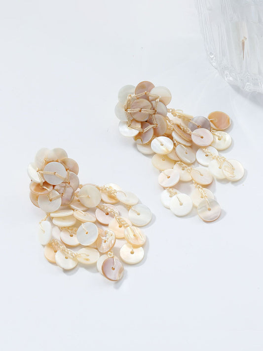 Uzun El Yapımı Yuvarlak Kabuk Püskül Küpeler