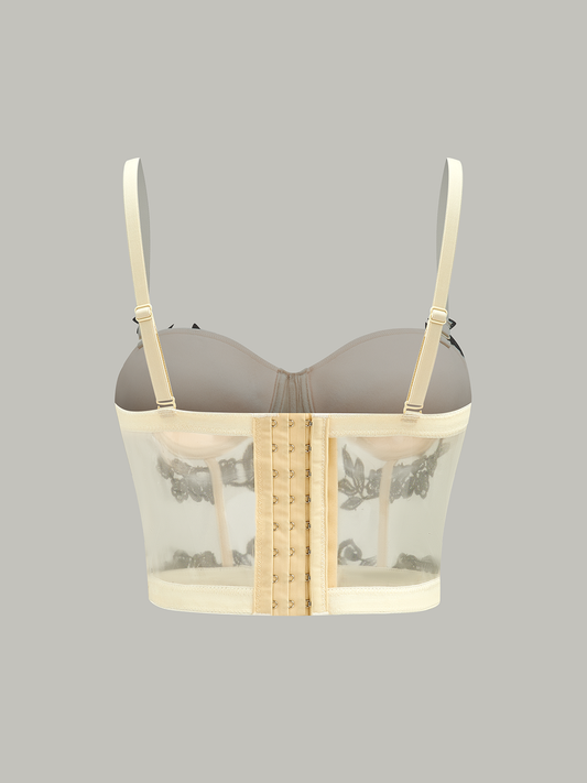 Yarı Şeffaf Çiçek Nakışlı File Korse Üst