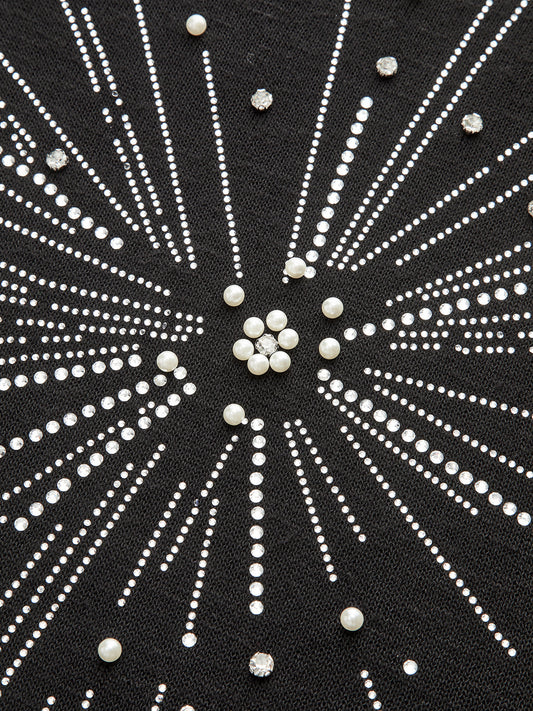 Yapay Elmas ve İnci Havai Fişek Desenli Örgü Üst