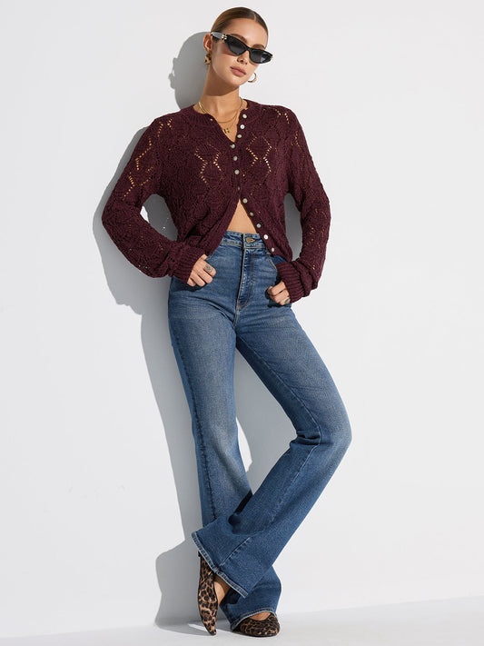 Yarı Şeffaf Ajurlu Örgü Hırka