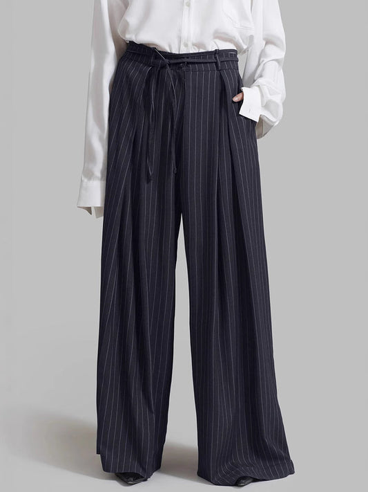 Bağcıklı İnce Çizgili Geniş Paça Pantolon