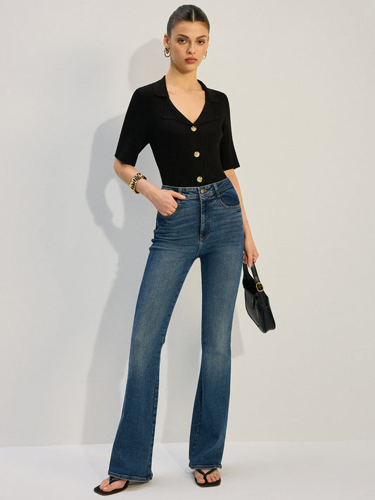 Pamuk ve Keten Kimono Kol Düğmeli Üst