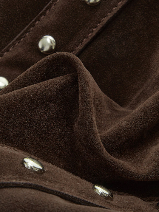 Süet Zımbalı Yarım Ay Omuz Çantası