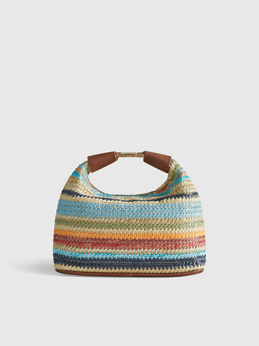 Deri Askılı Renk Bloklu Çizgili Hasır Çanta