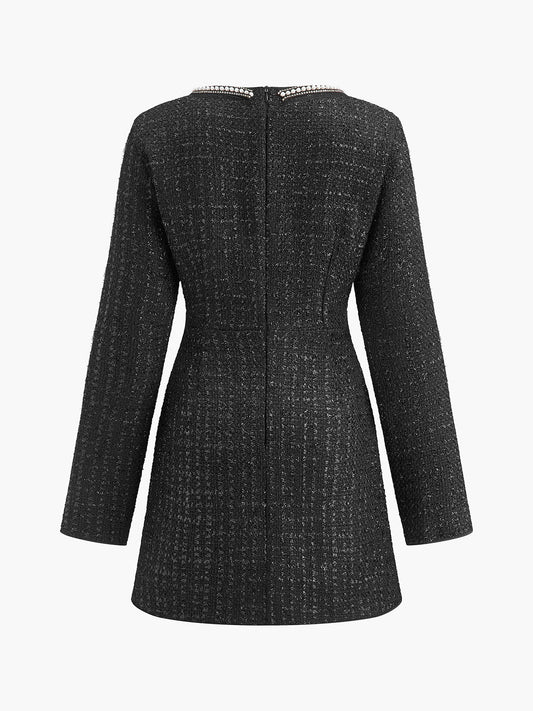 Tweed Örgülü Halat Yaka Kısa Kollu Elbise