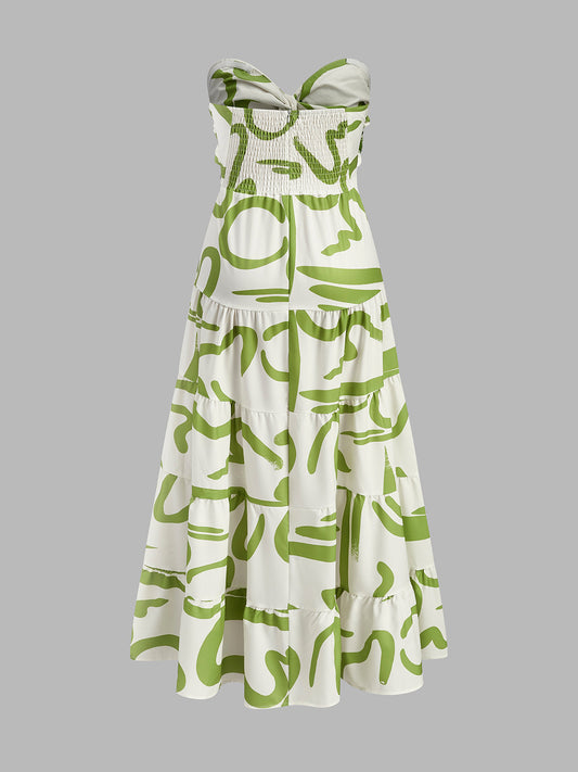 Tül Baskılı File Askısız Tüp Midi Elbise