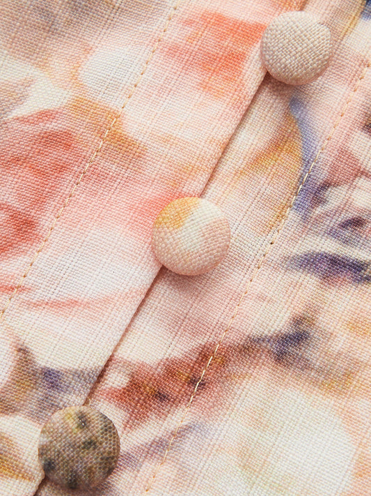 Boho Uzun Kollu Düğmeli Çiçekli Elbise