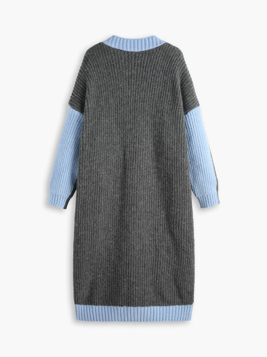 Büyük Boy Renk Bloklu Uzun Hırka