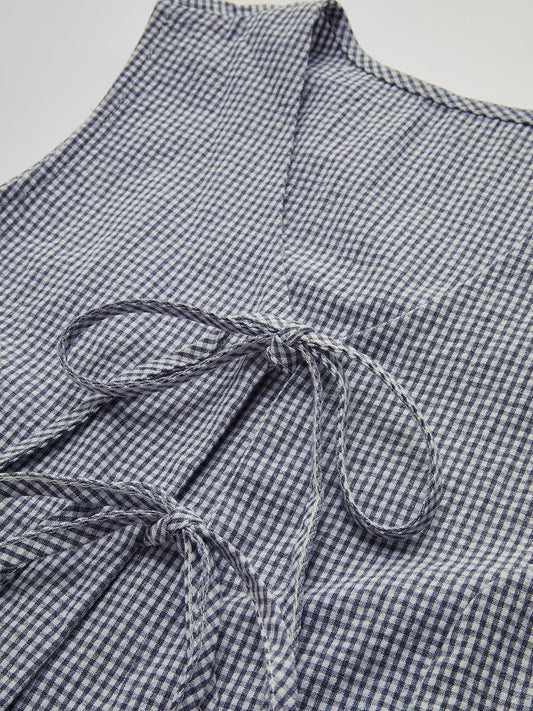 Ekose Ön Bağlamalı Yarım Kollu Bluz