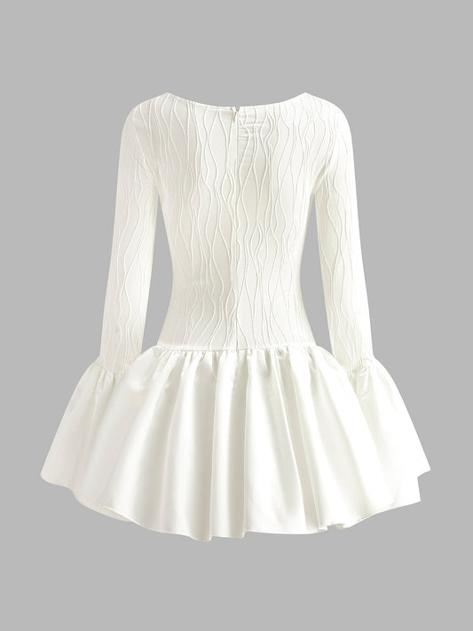 Kenarlı Pileli Fermuarlı Elbise