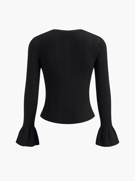İnci Dekorlu Volanlı Manşetli Örgü Üst
