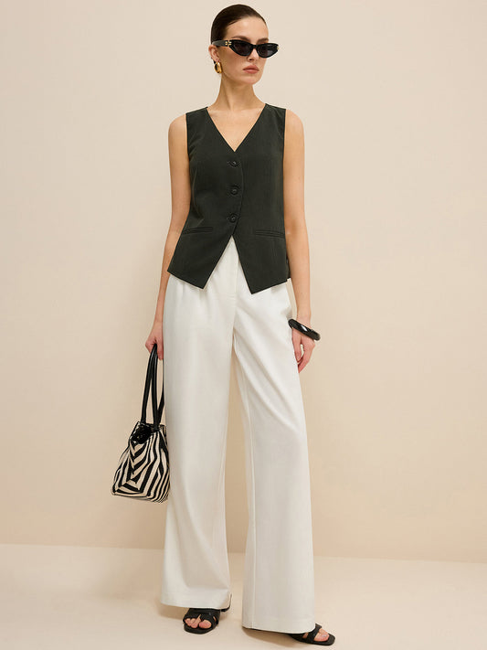Çizgili Düğmeli Kolsuz Gömlek