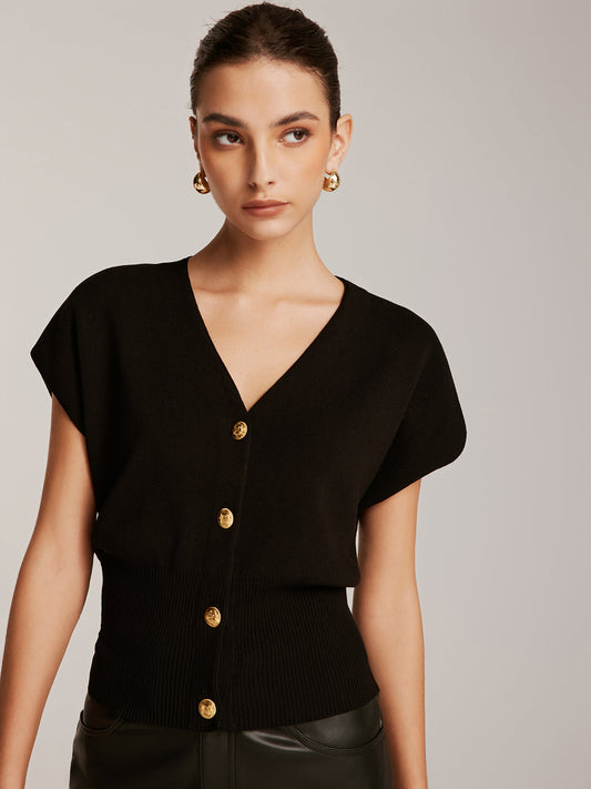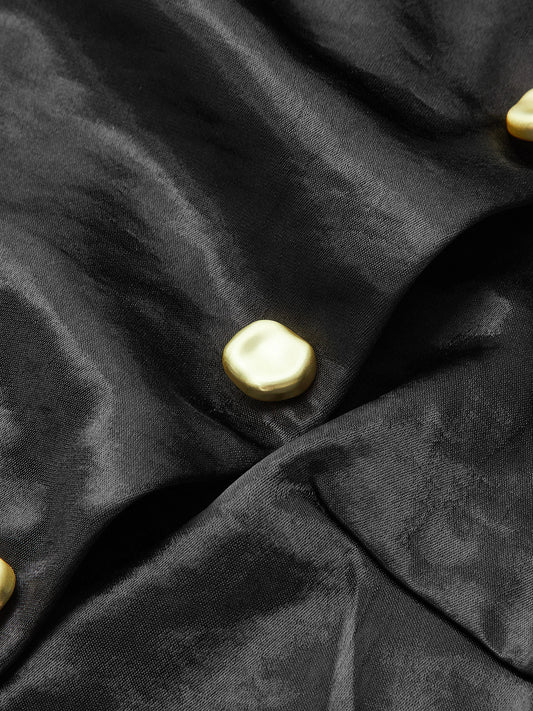 Metal Detay Saten Dik Yaka Kolsuz Üst