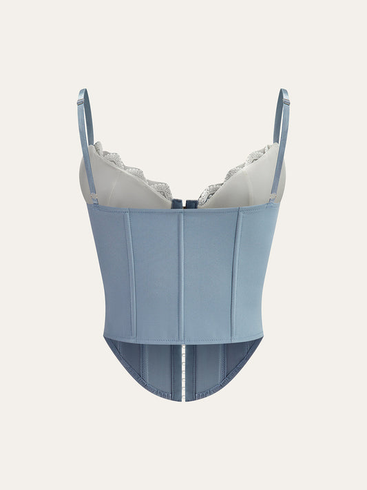 Dantel Kenarlı Kalp Yaka Fiyonk Detaylı Korse