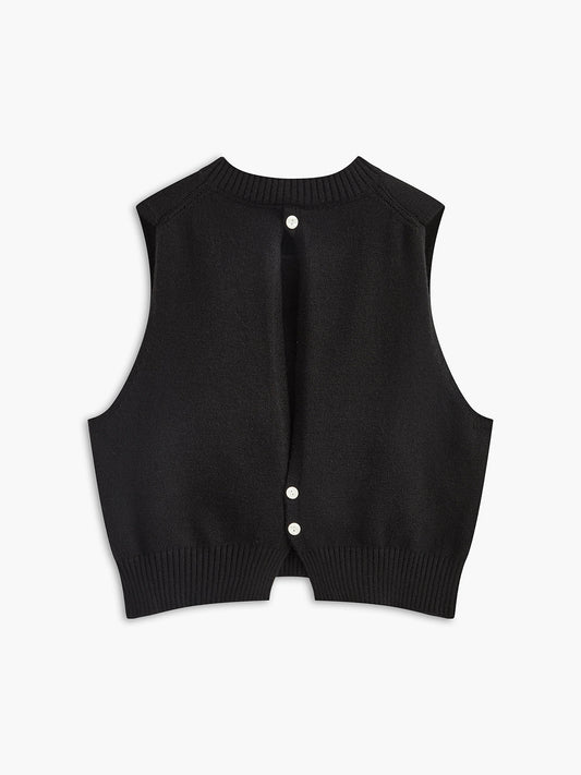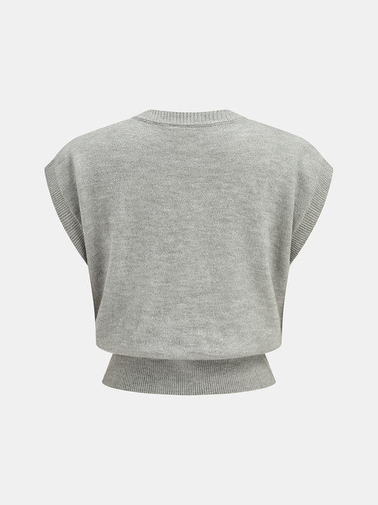 Çiçek Aplikeli Kısa Kollu Örgü Yelek
