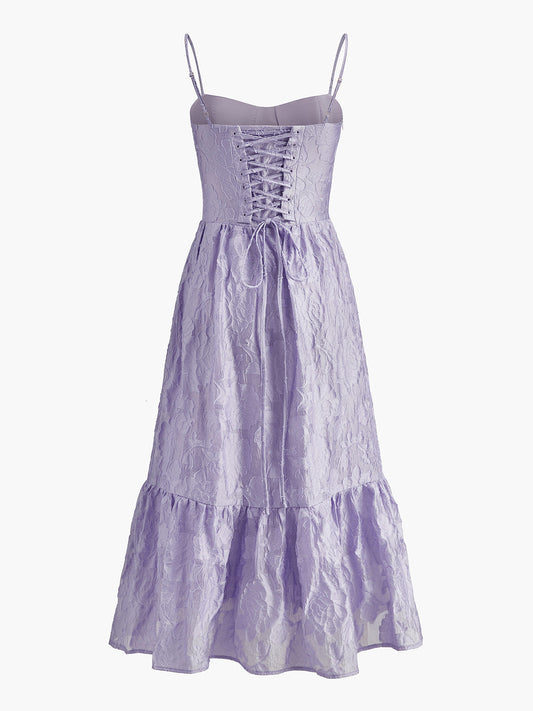 Korse Detaylı Çiçek Desenli Askılı Elbise