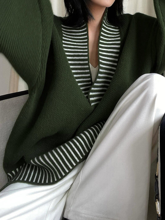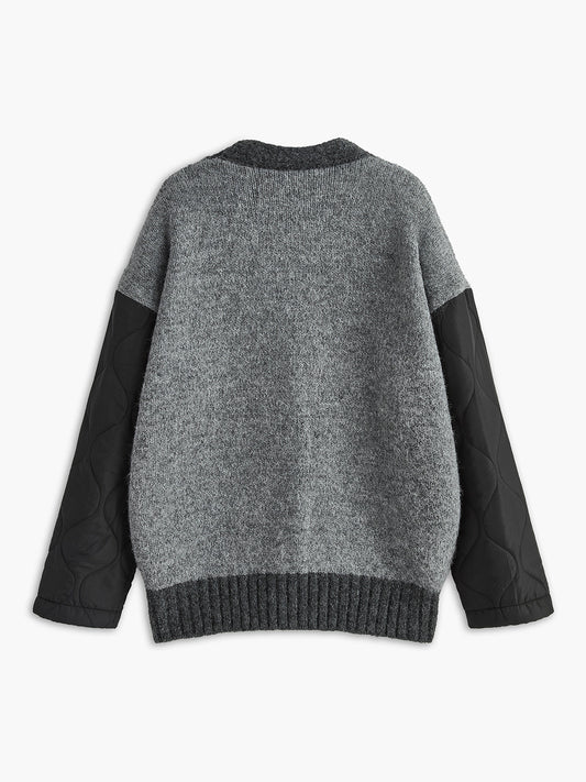 V Yakalı Kapaklı Cepli Panel Örgü Dış Giyim