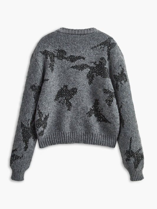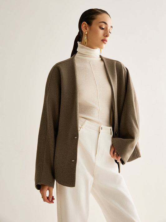 V Yakalı Önü Düğmeli Puf Kollu Hırka