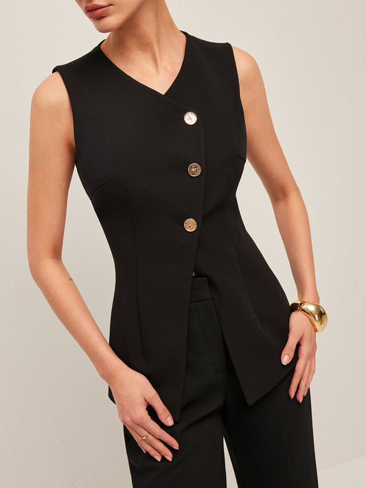 V Yakalı, Kenarlı, Düğmeli Kot Yelek