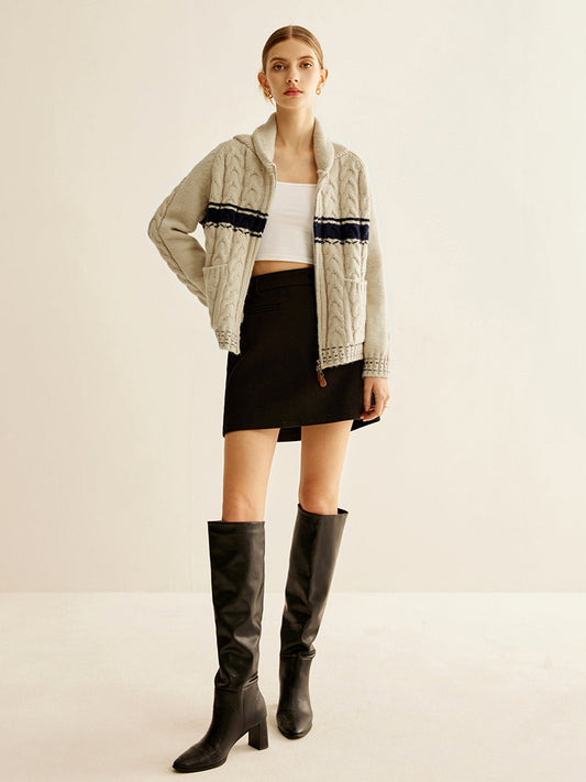 Renk Bloklu Büküm Fermuarlı Örme Dış Giyim