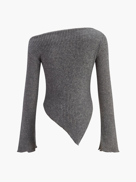 Soğuk Omuzlu Asimetrik İnce Örgü Üst
