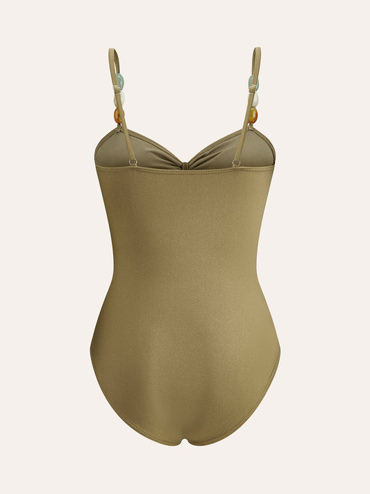 Boncuklu Askılı Kesim Tek Parça Mayo