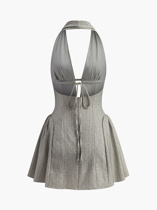 Sırtı Bağlamalı Askılı Pileli Elbise