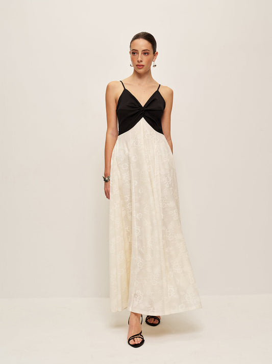 İki Tonlu Panelli Kesikli Pileli Elbise