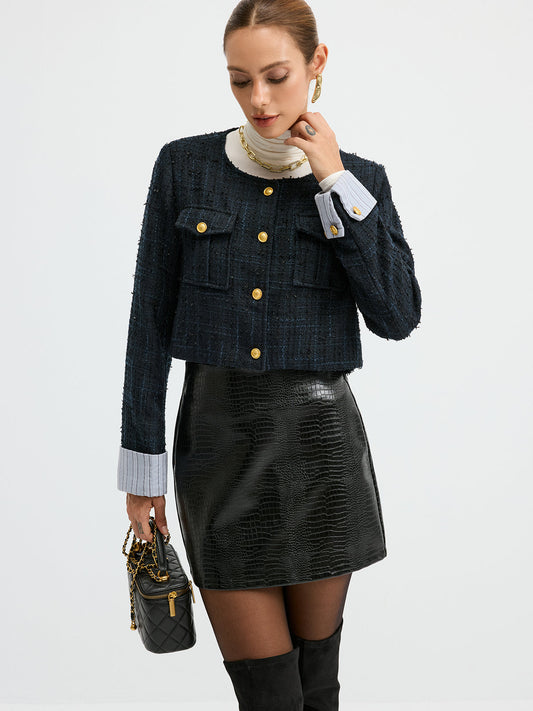 Tweed Manşetli Kollu Kısa Yün Karışımlı Ceket