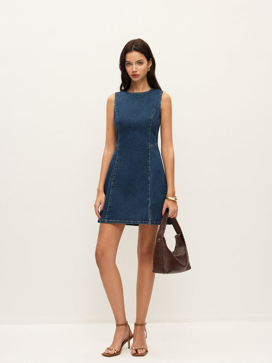 Düz Yuvarlak Yaka Kolsuz Mini Elbise