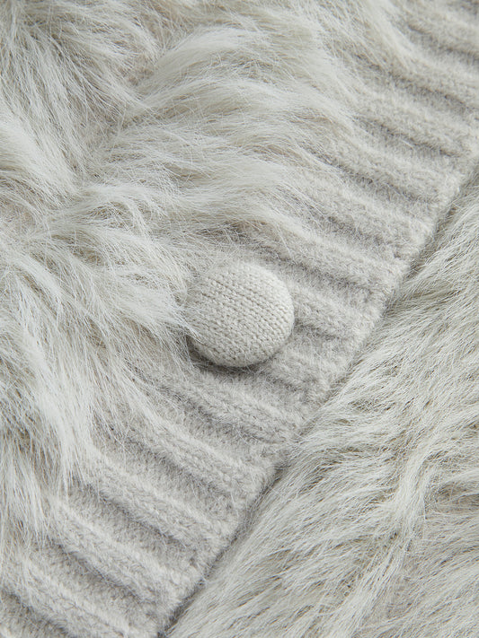 PU Yaka Yüksek Esneklikli Tüylü Hırka