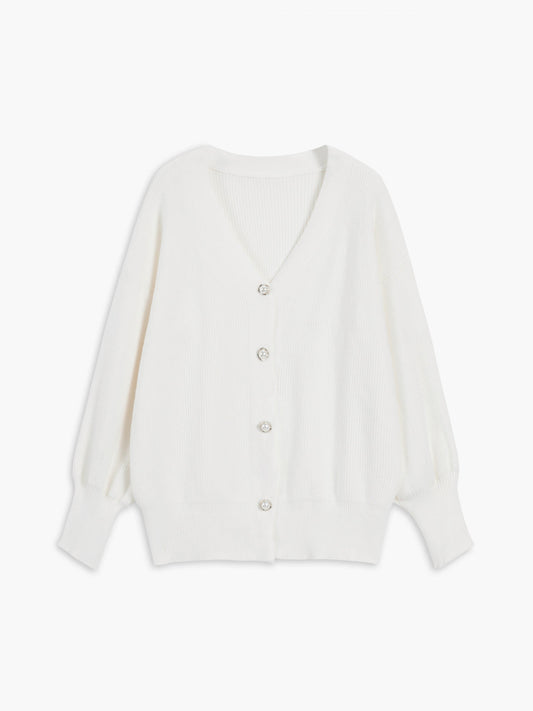 V Yaka Düğmeli Örgü Hırka