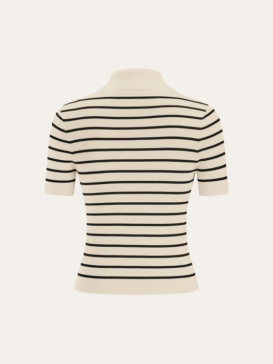 Çizgili Kısa Kollu Polo Yaka Örgü Hırka