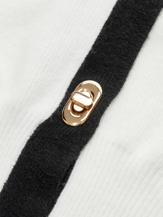 Kontrast Taraklı Kenarlı Metal Düğmeli Hırka