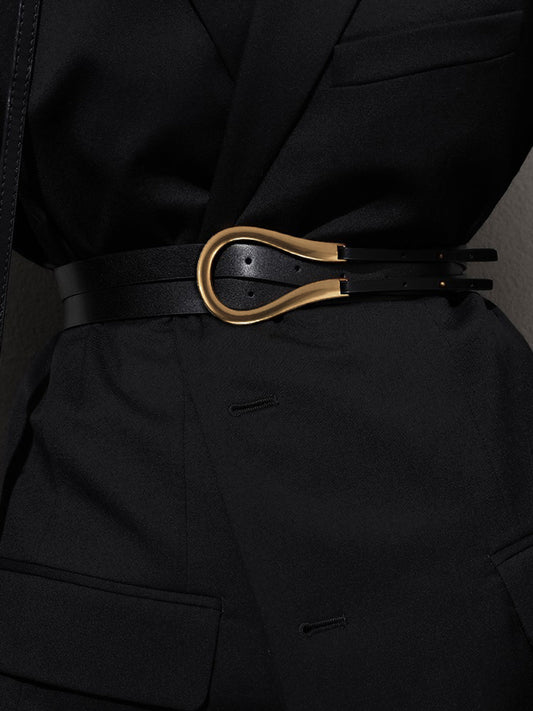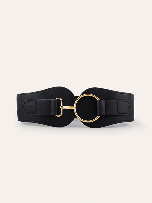 Altın Yuvarlak Tokalı PU Deri Geniş Kemer