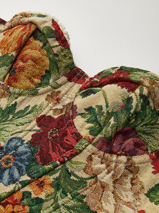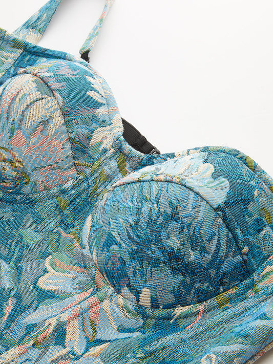 Arka Fermuarlı Kontrast Askılı Çiçek Baskılı Korse Üst