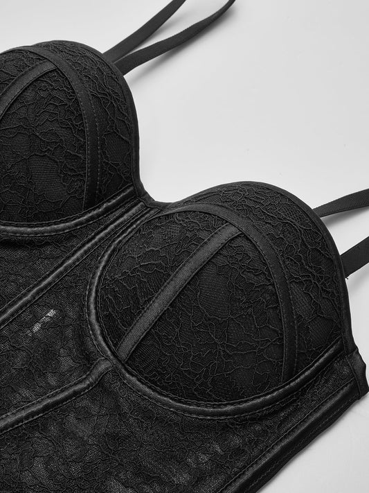 Yarı Şeffaf Çiçekli Dantel Korse Üst