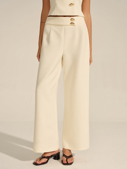 Yüksek Belli Çift Düğmeli Düz Paça Kot Pantolon