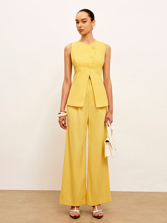C Vitamini Keten Pamuklu Geniş Paça Pantolon