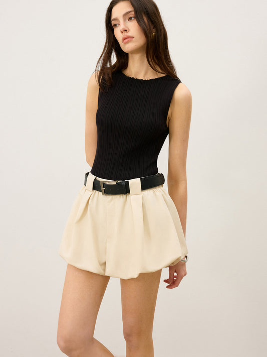 Kemerli Yüksek Bel PU Deri Paçalı Şort