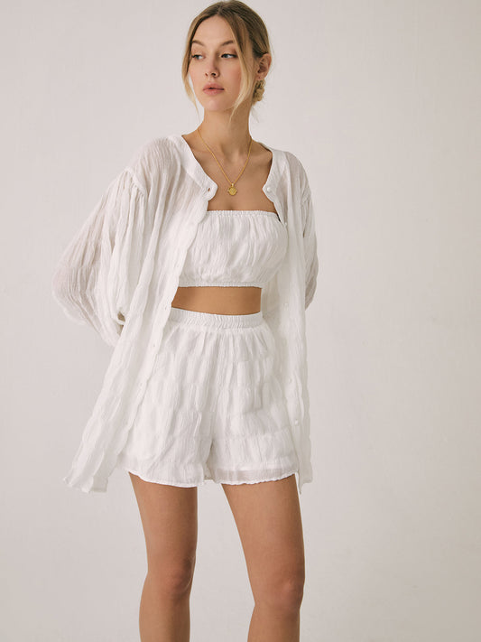 Yarı Şeffaf Pamuklu İşlemeli Gömlek Şort Takımı