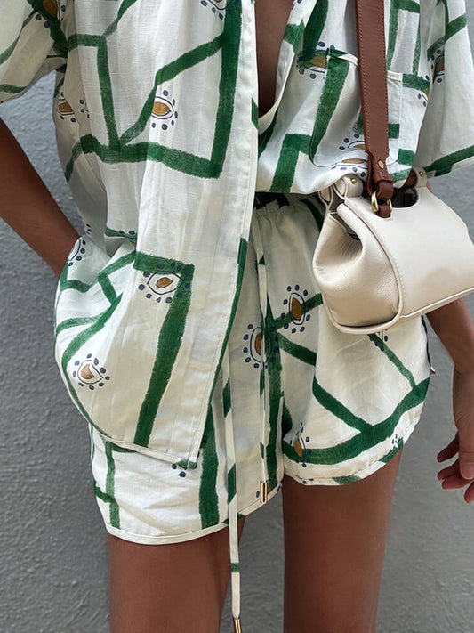 Pamuk ve Keten Bağcıklı Şort Takımı