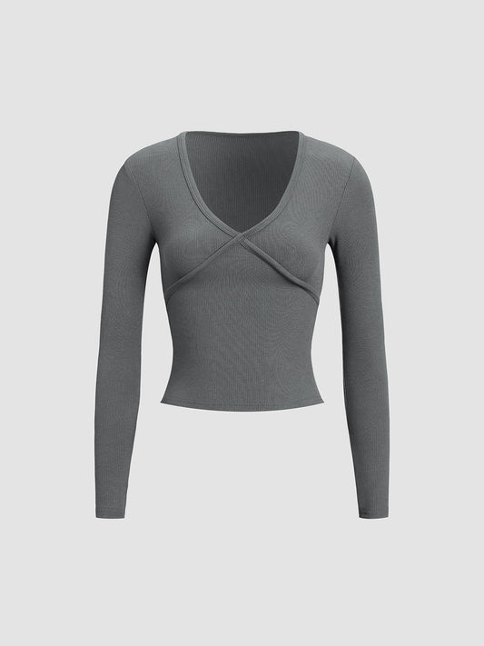Çapraz Yaka Pileli Sıkılaştırılmış Tişört