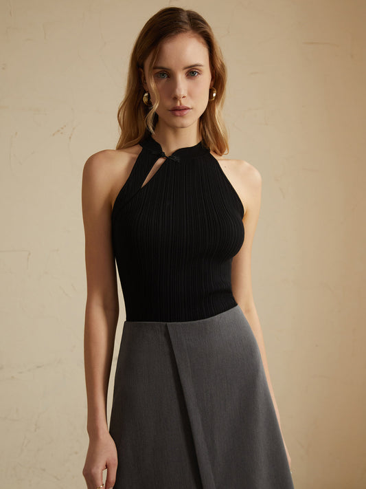 Yün Karışımlı Kolsuz Düğmeli Örgü Hırka