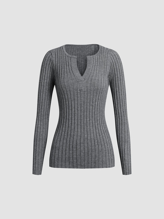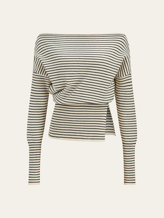 Yırtmaçlı Omuz Açık Çizgili Kazak