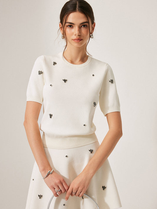 Çok Yönlü Metal Dekorlu Örgü Üst