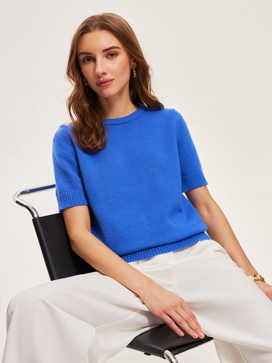 Metal Dekorlu Kesik Yaka Kısa Kazak