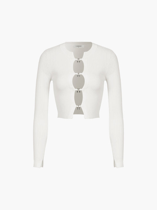 Kontrast Kesim Metal Düğmeli Örgü Üst