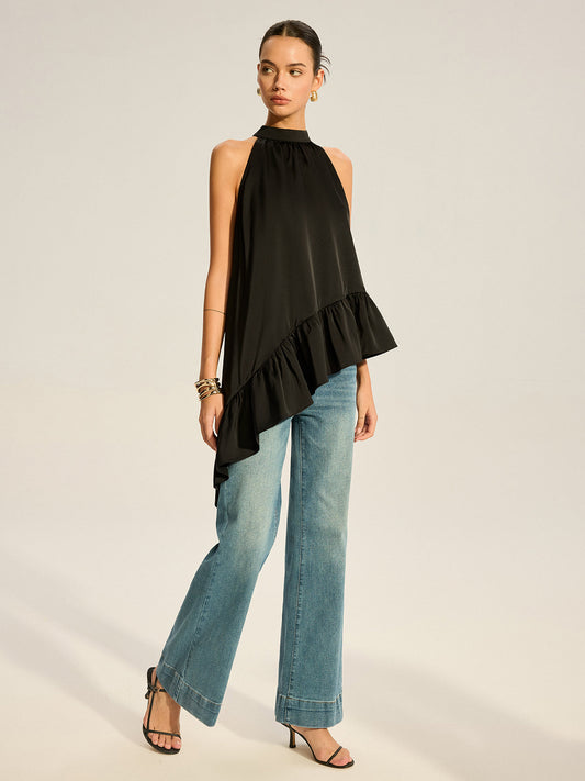 Asimetrik Askılı Metal Halka Detaylı Üst